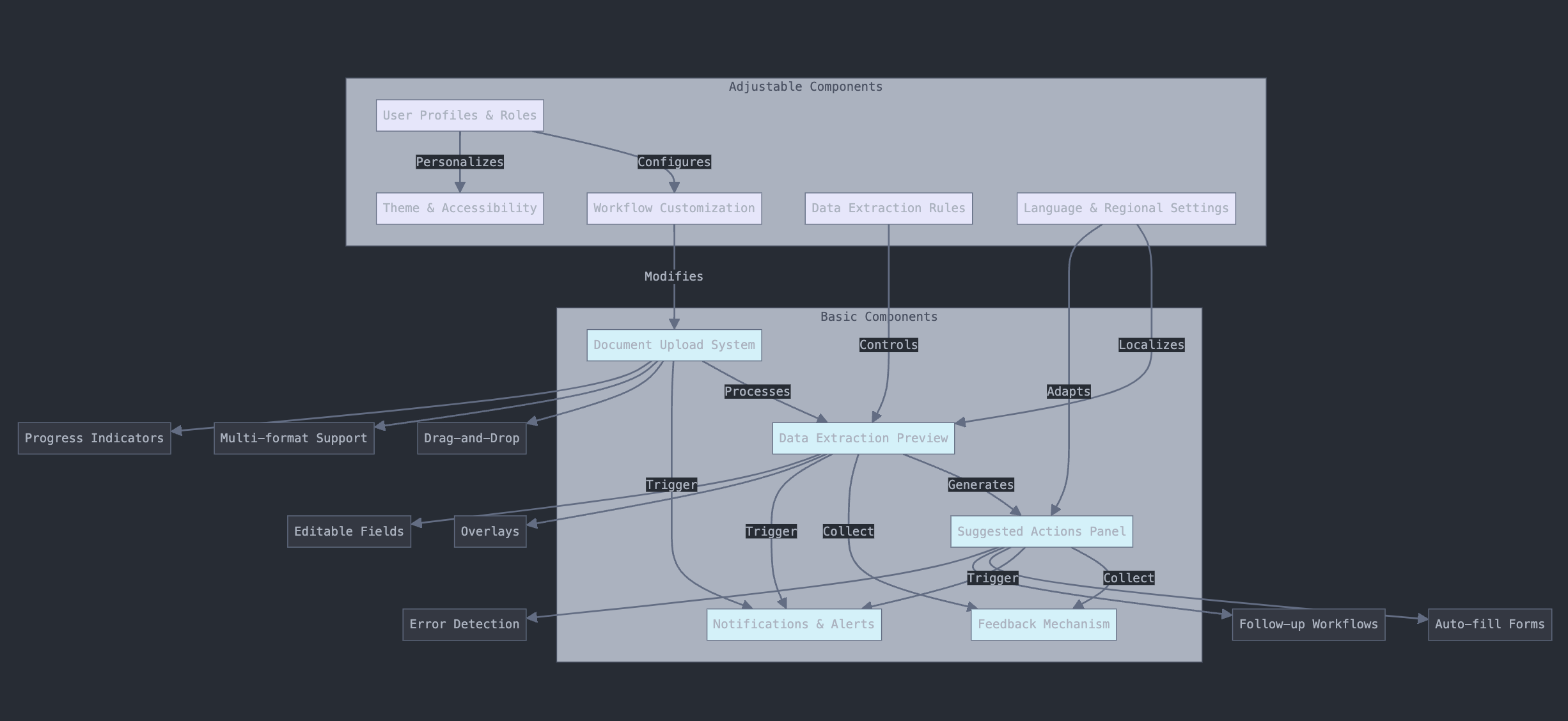 These components form the foundation of a functional document AI-processing assistant and must be present in any implementation: